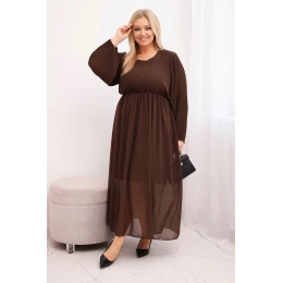 Dámská plisovaná sukně Plus Size z viskózy s dlouhým rukávem hnědá
