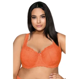 Dámska podprsenka 053/22 Carmela orange plus MAT - oranžová farba - čipka s kvetinovým motívom - vystužená - vnútorná strana košíčkov podšitá bavlnou - bočné časti s kosticami - nastaviteľné a neodnímateľné čipkované ramienka - nadvihuje a drží poprsie