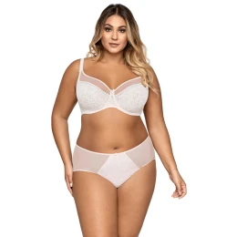 Dámská podprsenka 1396 Crystal white AVA - bílá barva - horní část košíčků je vyrobená z jemné síťoviny - košíčky a střed podprsenky jsou pokryté svůdnou krajkou - dolní část košíčků je zesílená síťovinou - zadní díl je vyrobený z pružné síťoviny - mezi košíčky je umístěna mašlička se stylovou ozdobou - podprsenka má svislé boční kostice - ozdobná ramínka je možné nastavit, ale nelze je odepnout