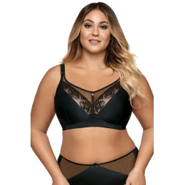 Dámska podprsenka 1691/1 Libi black plus AVA - čierna farba - mäkký typ - mäkké hladké košíčky - podšité látkou - vrchná časť z priehľadnej sieťoviny a čipky - široké ramienka - zapínanie na dva alebo tri háčiky s trojcestným zapínaním - ideálna pre ženy s väčšími a plnšími prsiami Zloženie materiálu: 88% polyamid + 8% bavlna + 4% elastan