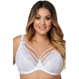 Podprsenka 1824 Venus white plus AVA - biela - košíčky z kombinácie jemnej čipky a sieťoviny - medzi košíčkami mašlička s ozdobou - chrbát a boky sú z elastickej lycry - ramienka sú nastaviteľné a neodnímateľné - zapínanie na dva alebo tri háčiky v závislosti od veľkosti Zloženie materiálu: 88% polyamid + 8% bavlna + 4% elastan