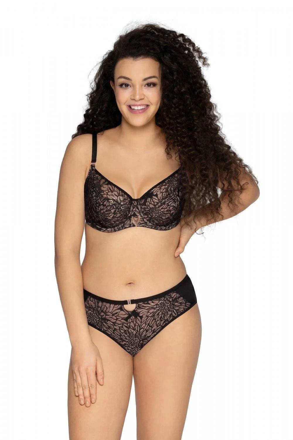 1955 Let´s get loud AVA podprsenka - čierna - čipkované košíčky s kvetinovým motívom - podšitá béžovou bavlnou - kostice - elastický tylový obvod - nastaviteľné a neodnímateľné ramienka Zloženie materiálu: 88% polyamid + 8% bavlna + 4% elastan