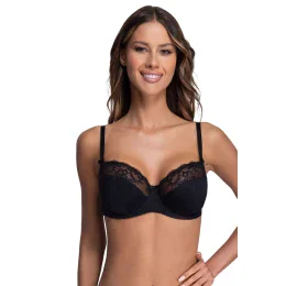 Dámská podprsenka 2111 Azalea plus AVA - černá barva - typ soft - z hladkého mikrovlákna - horní část košíčků zdobená krajkou - vyztužená kosticemi - ramínka posuvná a neodepínatelná - zapínání na dva nebo tři háčky s třístupňovým nastavením