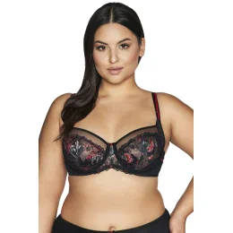 Podprsenka 2122 Intense AVA - čierna - mäkká podprsenka - s bočnou oporou - košíčky z jemnej priehľadnej čipky - s kosticami - medzi košíčkami mašlička - nastaviteľné ramienka zdobené červeným pásikom - zapínanie na klasické háčiky s trojstupňovou reguláciou