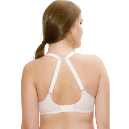 Proslulá britská D+ značka Panache přináší ve své kolekci Sculptresse podprsenku Sasha. Tato podprsenka nadchne své majitelky krásnou zapudrovaně růžovou barvou a muldovaným měkkým košem potaženým velmi jemným mikrovláknem. Dále určitě také dostatečně širokými a podloženými ramínky, které se na zádech dají zapnout jedním háčkem k sobě (typ "boxer") a jsou nastavitelná, kdy se díky svým ozdobným rýhám ani ve velkých velikostech opravdu ani nepohnou. Střed podprsenky je vysoký a zdobený saténovou mašličkou. Střed a spodní část pod košíčky, která na bocích pokračuje do obvodu je z velmi decentní krajky, která je podšita jemným tylem. Obvod je zapínatelný na dva háčky ve třech řadách a zapínání je měkce podloženo. Dokonalá volba pro dámy s větším poprsím, které ve své velikosti marně hledají něžnost decentní růžové, jemně muldovaný koš, mírné zdobení krajkou, dokonalé zpracování detailů - zejména důkladnou podporu obvodu a zajištění ramínek.