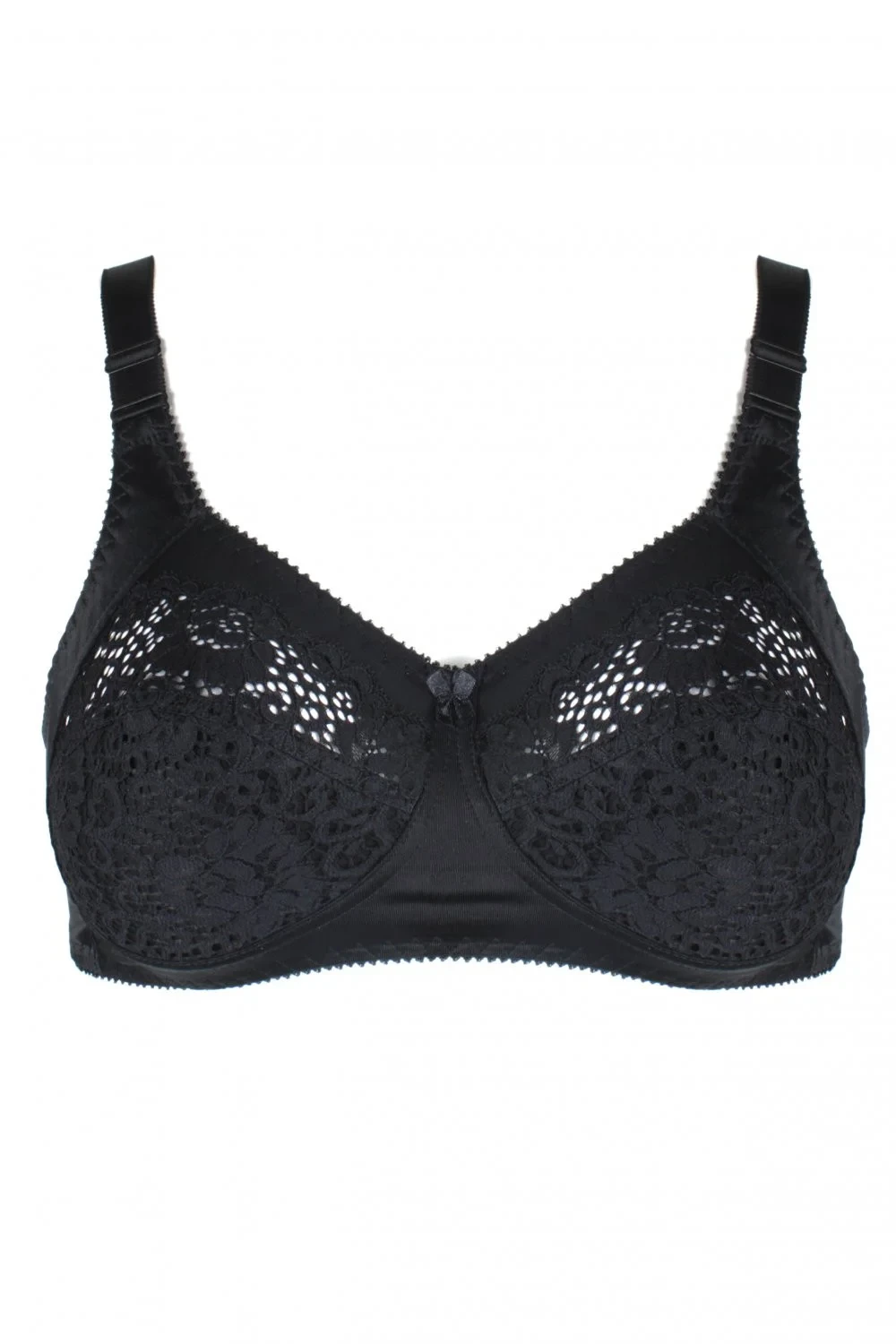 Podprsenka pre ženy s väčším poprsím 579 Viki - je ušitá z čipky - vnútro košíčkov je podšitý jemnou bavlnou - má široké ramienka a trojstupňové zapínanie - krásne podčiarkne tvar poprsiaMateriálové zloženie: 78% polyamid + 18% elastan + 4% bavlna