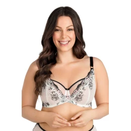 840 Čiernobiela podprsenka GORSENIA - biela - mäkký typ podprsenky - mäkká podprsenka s kosticami - košíčky zdobené kvetinovou čipkou - poskytuje silný zdvíhací efekt - boky zo stabilnej sieťoviny, bez bočných kostíc - pre ženy so stredným a veľkým poprsím - nastaviteľné a neodnímateľné ramienka (väčšie veľkosti vystužené zamatovou páskou) - zapínanie na dva alebo tri háčiky so štvorstupňovým nastavením