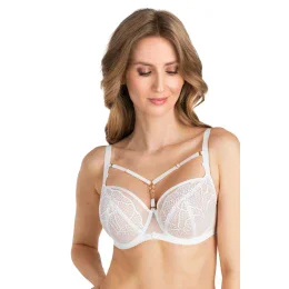 Dámska podprsenka 849 Forever GORSENIA - biela - mäkký typ podprsenky - mäkká podprsenka s kosticami - košíčky podšité sieťovinou zdobené výšivkou - kostice na bokoch zabraňujú ovísaniu - nastaviteľné a odopínateľné ramienka vo výstrihu - nastaviteľné a neodopínateľné ramienka - zapínanie na dva alebo tri háčiky s trojstupňovým nastavením