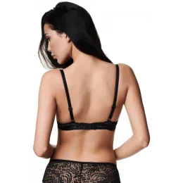 Dámská podprsenka 37369 Hint black HENDERSON - černá barva - push up košíčky - košíčky zdobené tylovou krajkou s květinovým motivem - vyjímatelné push up vycpávky - neodepínatelná ramínka - zapínání na dva háčky s třístupňovým zapínáním