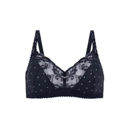 Měkké košíčky podprsenky se přirozeně tvarují a zároveň poskytují pohodlí po celý den. Design obsahuje průhledné vsadky s nádhernou výšivkou na přední straně, které dodávají nádech elegance a jemně zvýrazňují poprsí. Celou podprsenku zdobí jemný puntíkovaný vzor, ​​který dodává styl i praktičnost pro každodenní nošení.