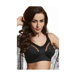 Pohodlná podprsenka Viki 578 pre ženy s väčším poprsím. Je mäkká, veľmi pohodlná a dobre drží poprsie. Je vyrobená z elegantnej čipky a polyamidu. Košíčky sú podšité bavlneným materiálom a široké ramienka zaisťujú pohodlie pri nosení.