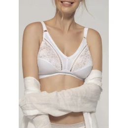 Táto klasická podprsenka bez kostíc od značky Dorina je určená pre dámy, ktoré majú rady pohodlie. Podprsenka je bez kostíc a je mimoriadne pohodlná. Zdobí ju čiastočná čipka s kvetinovým motívom. V oblasti obvodu je vystužená mäkkou gumou, ktorá zabezpečuje, aby poprsie držalo v požadovanej výške. Má mäkké, široké, vpredu dĺžkovo nastaviteľné ramienka, ktoré zabezpečujú pohodlie svojej majiteľky pri nosení. Zapínanie je dvojradové v troch polohách.