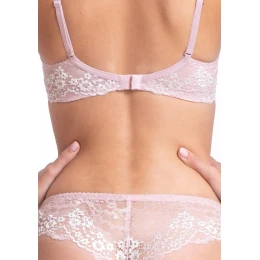 Dámská celokrajková push up podprsenka braletkového typu značky Fantasy. Jemné a měkké košíčky jsou formovány do push-up efektu pomocí měkké pěnové výplně, vytvarují Vám krásný a plný dekolt. Pevně všitá ramínka jsou lehce délkově nastavitelná a jsou zdobena drobnými mašličkami. Mezi košíčky je stříbrná aplikace s blyštivým kamínkem. Dvojitě podšitý středně široký obvod je ukončen zapínáním na jeden háček a tři pozice.