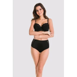 Revoluční kráska, kterou nebudete moci přestat zbožňovat! Krásné, tvarované košíčky s vyztuženou spodní částí. Perfektně se hodí pro střední a velké poprsí. Spodní část je zahalena do černého mikrovlákna a vnitřní strana je bavlněná. Linii dekoltu zase tvoří krajka podšitá tylem. Ramínka lze regulovat, jsou komfortně přizpůsobena velikosti košíčků i obvodu. Mezi košíčky je ozdobná krajka, po stranách obvodu nejsou svislé výztuhy.