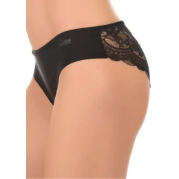 Dámske brazílske nohavičky od talianskej značky LEILIEVE. Predná časť je laserom strihaná, zadná časť je z elastickej jemnej čipky. Brazílske nohavičky sú zaradené do kategórie "neviditeľné", sú vhodné pod priliehavé oblečenie. Predná časť je úplne hladká s logom výrobcu na pravej strane. Zadná časť je z elastickej veľmi dekoratívnej čipky, ktorá dokonale obopína zadoček, v páse je elastická. Uprostred je všitý bavlnený klin pre pohodlné nosenie. Nohavičky sú extra priedušné, veľmi tenké a rýchloschnúce. Materiálové zloženie: 72 % polyamid, 28 % elastan.