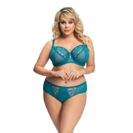 Podprsenka je vhodná pro ženy se středně velkým, velkým a velmi velkým poprsím. Stabilní hladká dvojitě složená síťovaná tkaninna ideálně obepíná poprsí a stahuje jej ke středu hrudníku. Konstrukce modelu navíc poprsí krásně nadnáší a dodává mu oblý tvar. Vrchní část košíčků je pokrytá ornamentální výšivkou na tylu a je olemovaná pružnou páskou. Zvláštní pozornost si zaslouží pásky, které je možné nastavit i odepnout. Střed modelu je vyrobený z tylu s výšivkou. Košíčky jsou vytvarované drátky.
