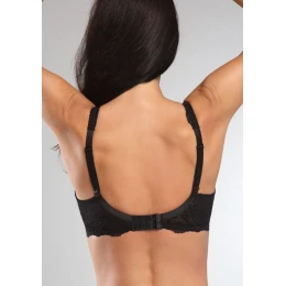 Dámská podprsenka značky Fantasy. Díky použitému 3D spacer materiálu (trychtýřkovitému zpracování materiálu) je tato podprsenka lehká, vzdušná a výborně odvádí pot od těla a přitom se budete cítit absolutně pohodlně a svěže. Jemné a měkké košíčky jsou dokrášleny na bocích krásnou květinovou krajkou s odlesky smetanového prošívání. Pevně všitá ramínka jsou krajková, lehce délkově nastavitelná. Mezi košíčky je stříbrná aplikace s kamínkem. Jemné košíčky zpevňuje uvnitř boční látková výztuž. Vyšší střed i obvod dokonale podrží i větší porpsí. Zadní zapínání je na dva háčky a tři pozice.