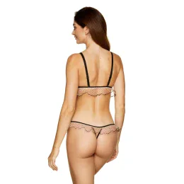 Krásná měkká podprsenka pro maximální pohodlí během nošení. Košíčky jsou vyrobeny z tylu pokrytého puntíky. Měkké košíčky bez kostic. Neodnímatelné, nastavitelné popruhy. Zapínání vpředu. Obvod z elastického pásku. Prodloužený spodní díl z tylu.