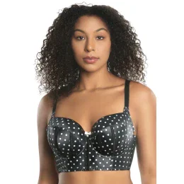 Mierne vystužená podprsenka od značky Parfait v luxusnej čiernej farbičke. Výborný strih dokáže urobiť krásny guľatý dekolt, perfektne sedí plnšiemu poprsie. Tvaruje poprsie pekne k sebe, nadvihuje je a tým vylepšuje aj celkovo opticky postavu. Podprsenka je uprostred košíčkov ozdobená malou mašličkou. Pri väčších veľkostiach sú širšie ramienka a päťháčikové zapínanie. Podprsenka je zhotovená z jemného saténu. Táto séria zaznamenala veľký úspech na výstave v Paríži pre svoj originálny vzhľad a netradičné spojenie materiálov.