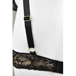 Nastavitelná ramínka, neodepínací, bufet a boky z tylu potaženého krajkou. Obvod zpevněný boční velrybí kostí.