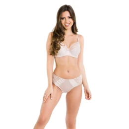 Konstrukce podprsenky má boční části, které ideálně stahují poprsí ke středu hrudníku. Spodní část košíčků je vyrobená ze stabilní lesklé tkaniny se vzorem. Vrchní část košíčků tvoří krajka. Boky modelu jsou ušité z hrubší tkaniny. Podprsenka má boční kostice. Košíčky jsou uvnitř pokryté bavlnou. Ramínka je možné nastavit, ale nelze je odepnout.