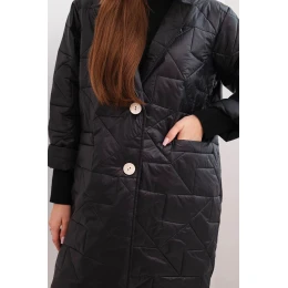 Táto štýlová a praktická dámska prešívaná bunda je ideálnou voľbou na chladnejšie dni. Model zapínaný na ozdobné gombíky dodáva eleganciu a klasický golier dodáva celému vzhľadu šik nádych. Prešívaná štruktúra zaručuje nielen módny dizajn, ale aj tepelný komfort. Bunda má vpredu dve praktické vrecká a dĺžku pokrývajúcu boky, čo sa skvele hodí na každodenné štylizácie aj formálnejšie príležitosti.