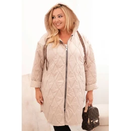 Dámska prešívaná bunda s kapucňou a nápisom HOPE v tmavobéžovej farbe