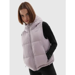 Dámska prešívaná vesta značky 4F.je vyplnená ľahkým syntetickým páperím, ktoré podporuje váš tepelný komfort počas každodenných aktivít. Vonkajší materiál je vybavený hydrofóbnou impregnáciou, ktorá spomaľuje absorpciu vlhkosti. Púzdrová vesta má tiež pohodlnú kapucňu s vysokým stojačikom, ktorá vás ochráni pred vetrom, a vrecká, do ktorých si môžete uložiť svoje veci.