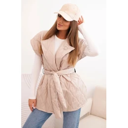 Dámska prešívaná vesta s opaskom a širokým golierom béžová