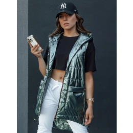 Dámská prošívaná dlouhá vesta s kapucí zelená Dstreet model 21979332 - FashionStreet