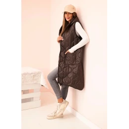 1. Dámská prošívaná vesta Plus Size s kapucí na zip mocca