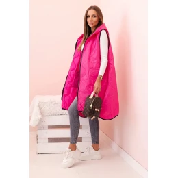 Dámská prošívaná vesta Plus Size s kapucí na zip růžová