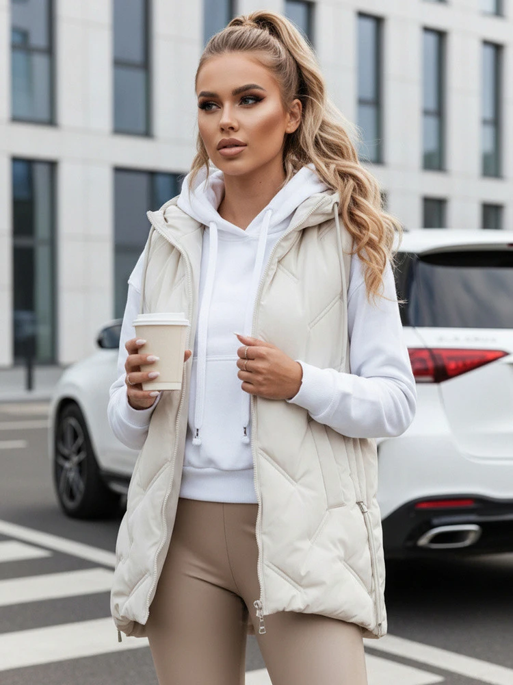 Lekka, pikowana kamizelka z kapturem to świetna alternatywa dla kurtki. Jej nowoczesny krój z bocznymi ściągaczami pozwala dopasować długość do sylwetki, a funkcjonalne detale sprawiają, że idealnie sprawdza się na co dzień.