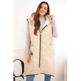 3. Dámská prošívaná vesta s kapucí na zip pro model 22030096 tmavě béžová - K-Fashion