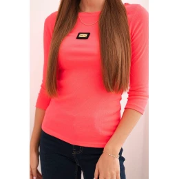 Dámská pruhovaná blůza s 3/4 rukávem a ozdobnou nášivkou růžový neon