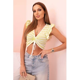 Dámska pruhovaná blúzka s volánom a volánom zelená