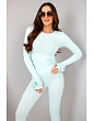 Blúzka s jemným riasením na bokoch a priliehavý strih legín nádherne zvýrazňujú ženskú postavu. Vďaka minimalistickému strihu sa súprava dokonale kombinuje s ostatnými kúskami šatníka a zároveň vyzerá štýlovo aj samostatne. Ideálne na jeseň a zimu ako základ pod sveter alebo bundu.