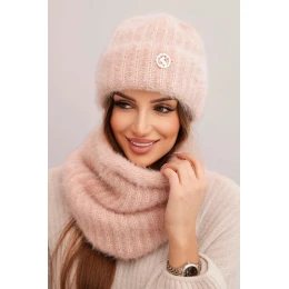 Pridanie recenzie k Dámská sada čepice a šály zimní huňaté s ozdobným model 22022705 světle pudrově růžová - K-Fashion