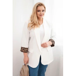 Dámská sako Plus Size s podšívkou v leopardím vzoru ecru