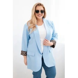 Dámska bunda nadrozmernej veľkosti s leopardou podšívkou Blue