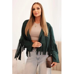 Dámska bunda s strapcami je výnimočný model, ktorý upúta pozornosť a dodá outfitu charakter. Je vyrobená z mäkkého materiálu pripomínajúceho semiš a dokonale zapadá do najnovších boho a westernových trendov. Krátky strih krásne zvýrazňuje postavu a efektné strapce pozdĺž rukávov a vpredu jej dodávajú uvoľnený a štýlový vzhľad. Skvele sa hodí na každodenné nosenie, ako aj na festivaly alebo stretnutia v prírode. Tento model je skvelou voľbou pre ženy, ktoré oceňujú jedinečný štýl a pohodlie. Môžete ho nosiť k džínsom aj šatám a vytvoriť tak originálne a módne outfity. Veľkosť je univerzálna a bude vhodná pre dámy veľkosti S, M alebo L.