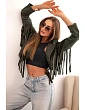 Dámska semišová bunda so strapcami bordová