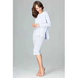 Skvelý komplet s rovnou sukňou pod kolená a voľnou blúzkou s dlhými rukávmi. Súprava krásne zvýrazňuje siluetu a dodáva jej ženskosť a eleganciu. Typický must have tejto sezóny.