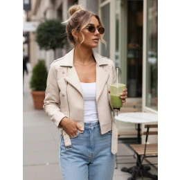 Kurtka damska skórzana ramoneska TY5643 beżowa