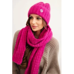 Dámská souprava čepice a dlouhý šál z měkké příze fuchsie