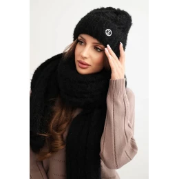 Dámská souprava čepice a šály s proužkem s ozdobou černý