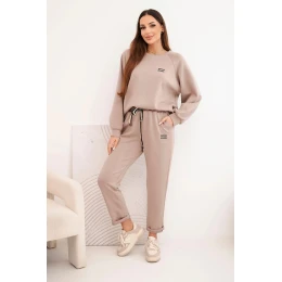 Dámská souprava máslová z viskózy s mikinou a kalhotami tmavě béžová