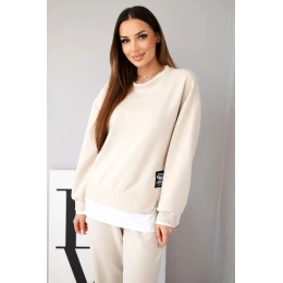 Dámska súprava s maslovou mikinou a voľnými teplákmi béžová
