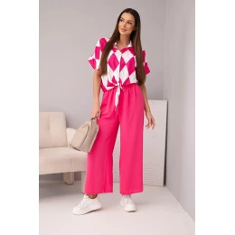 Dámská souprava viskózová halenka s vázáním a kalhoty s gumou fuchsie