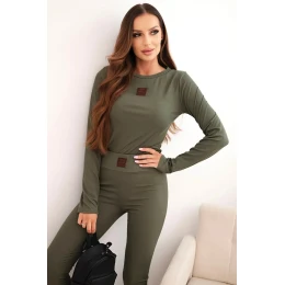 Dámsky bavlnený set s dlhým rukávom a legínami khaki